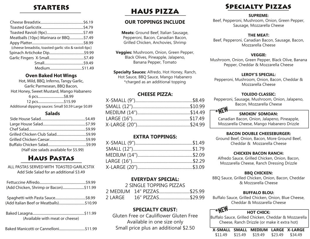 Introducing the menu at Pizza Haus - Wardsville, a culinary gem located in Jefferson City, MO, offers an extensive selection of pizzas that caters to every palate. This family-owned establishment prioritizes quality and community, evident in every dish they serve. Customers rave about the personalized service, often highlighting the owner’s warm engagement and the team’s accommodating nature.